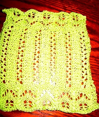 Once I go the hang of it, the pattern was pretty easy. Just a matter of counting and paying attention – -so not good for meetings or Stich n’ Bitch. The pattern is Fiber Trends, “Bathing Beauties.” Yarn is Catania by Schachenmayr.